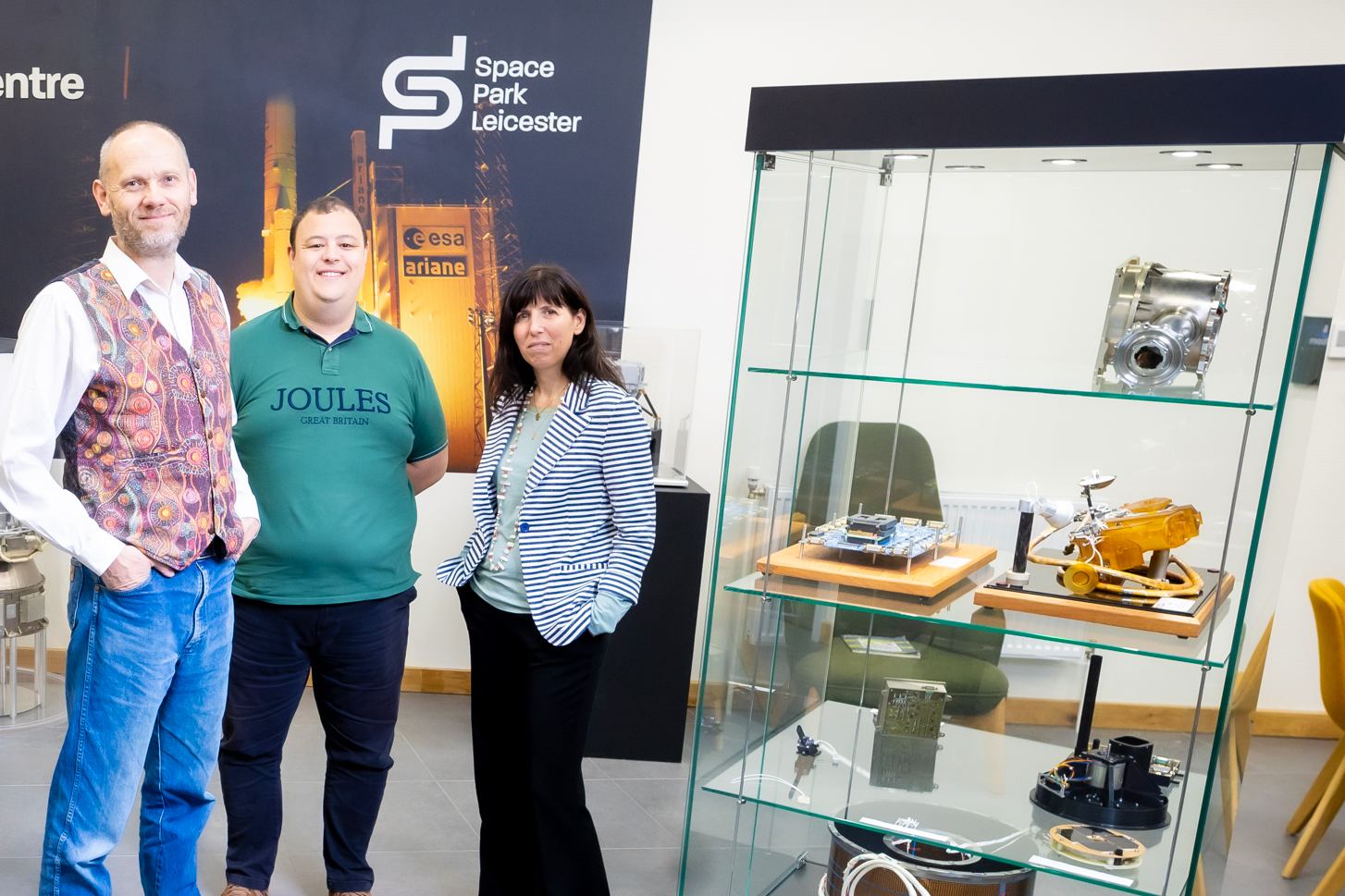 Main image: Space Park Leicester Deputy Director Professor Nigel Bannister, Education and Outreach Officer, Josh Barker and Dr Francesca Faedi, of the University of Leicester’s School of Business, will take part in the conference.