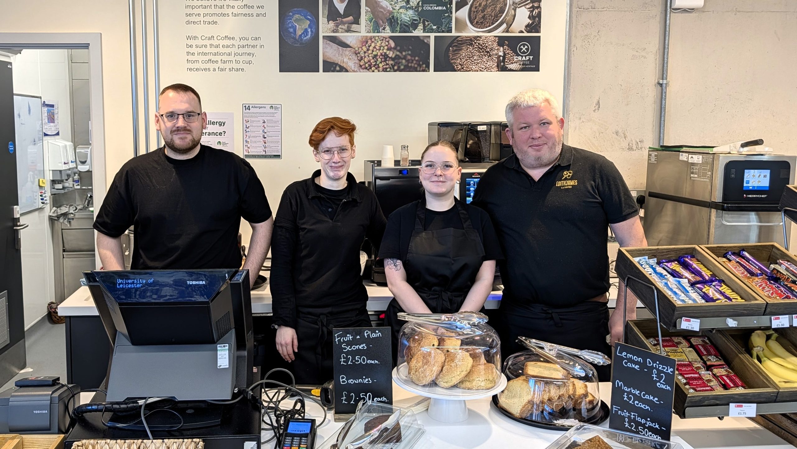 Edith James Catering also runs the café at the Attenborough Arts Centre and the Staff and Postgraduate Restaurant in the Charles Wilson Building on Main campus. The team will also take on all catering for events held at Space Park Leicester.