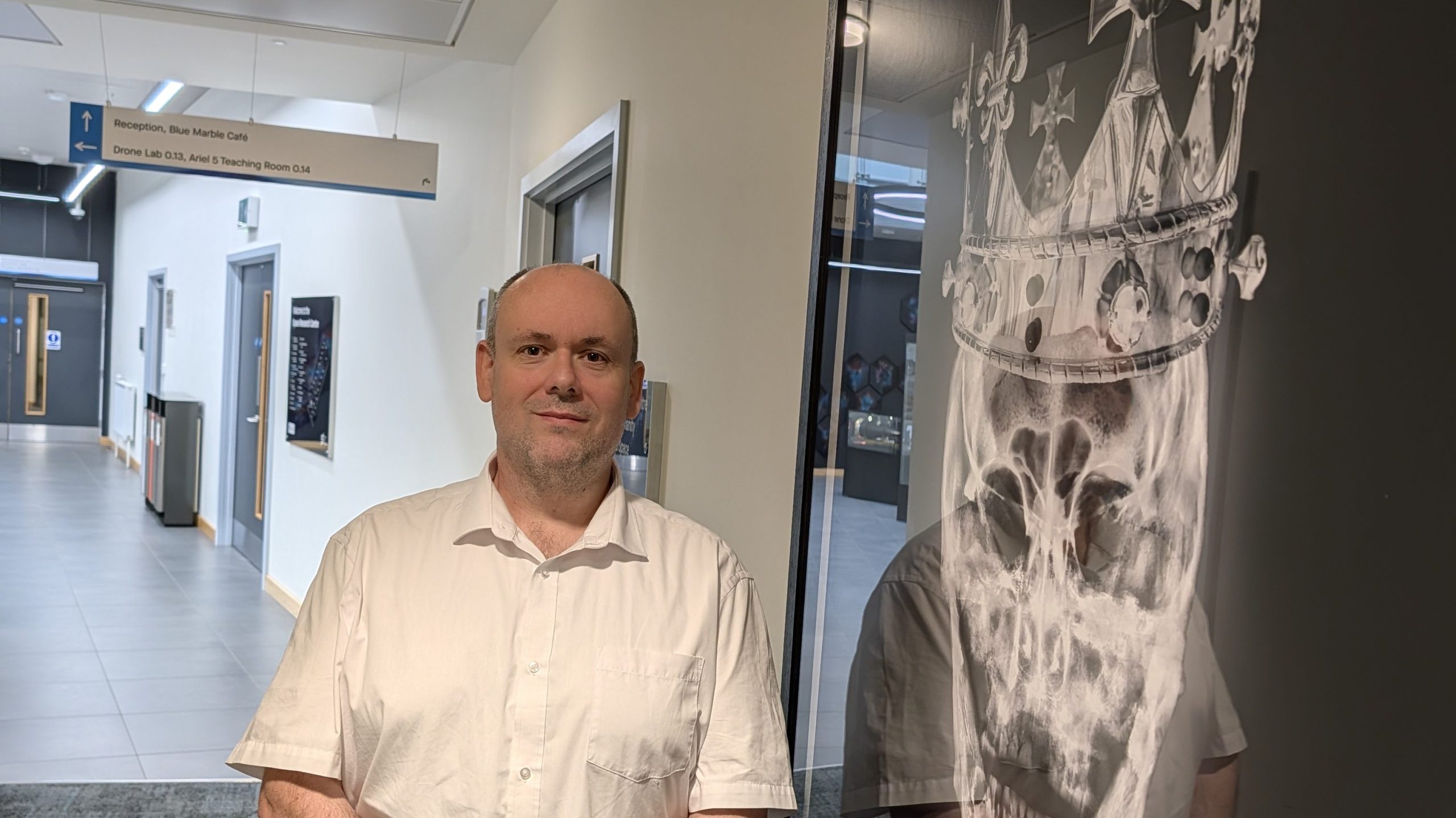 Main image: John Holt with a King Richard III artwork on display at Space Park Leicester